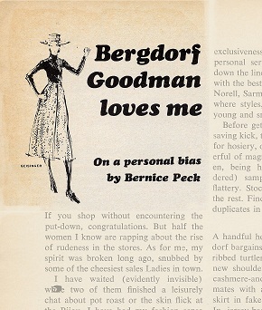 The 1970s was an age of shifting American mores and a loosening of social restrictions. It was the “ME” generation (EST –now rebranded The Forum, self-enlightenment philosophy, sexual revolution and women’s lib took hold), that was framed by a counter-culture psychedelia that opened the door to pop art, punk and disco. While this sense of personal freedom and expression created transformation on all levels, it also harkened in darker elements of social unrest and a decay in common civility. I find it interesting that this week’s guest fashion editor Bernice Peck observes the same in her column On a personal bias entitled “Bergdorf Goodman loves me.”