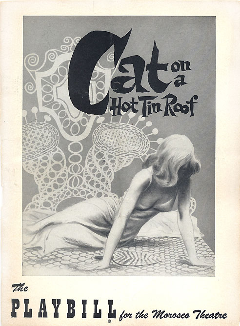 I don’t think it was a coincidence that as my orange tabby slept curled up in the corner chair, my vintage Playbill for Cat on a Hot Tin Roof spontaneously spilled across my desk — emerging from a black hole of bills, letters, and papers piled high. These last few months, I made a mental note to sort through my collection and select one play to write about for my next blog entry. “Cat” is one of my earliest Playbills, dated 1956, and as the Fates would have it, a perfect choice.
